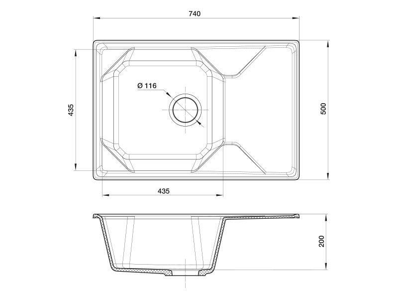Мойка кухонная GranFest Чёрная Unique U--740 L чер