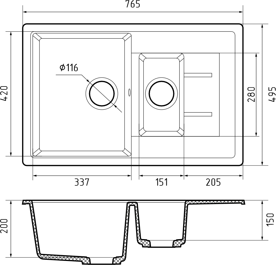 Общий размер: 765 * 495 мм