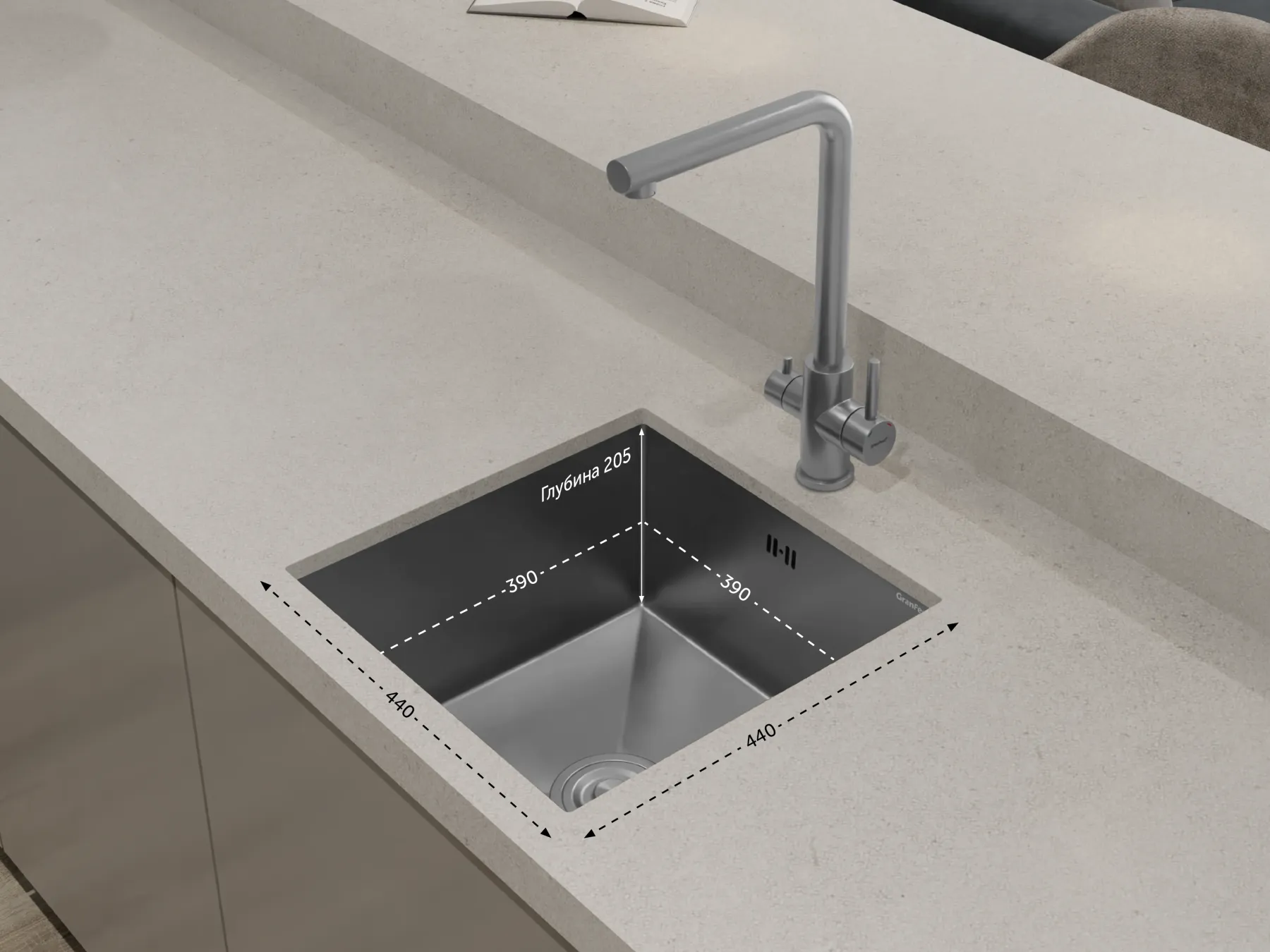 Мойка кухонная GranFest 4444 нерж Нержавеющая сталь