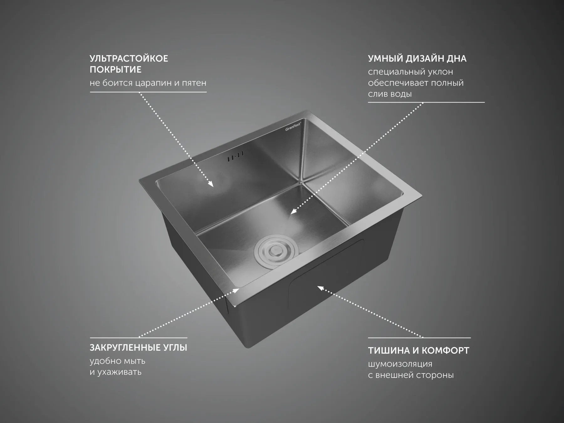 Мойка кухонная GranFest METAL 4538 нерж Нержавеющая сталь Подробнее