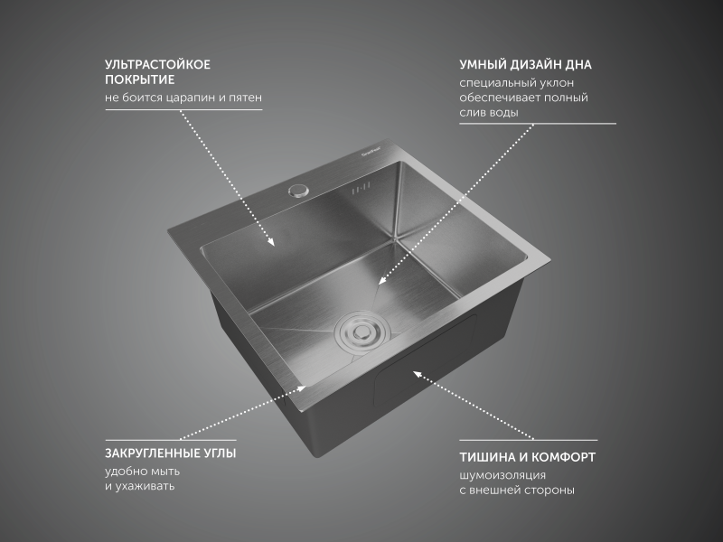 Мойка кухонная GranFest METAL 4844 нерж Нержавеющая сталь