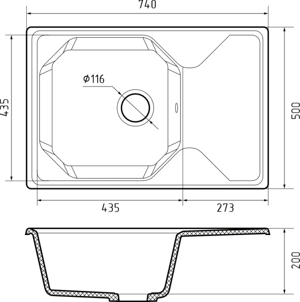 Мойка кухонная GranFest UNIQUE U-740L терракот