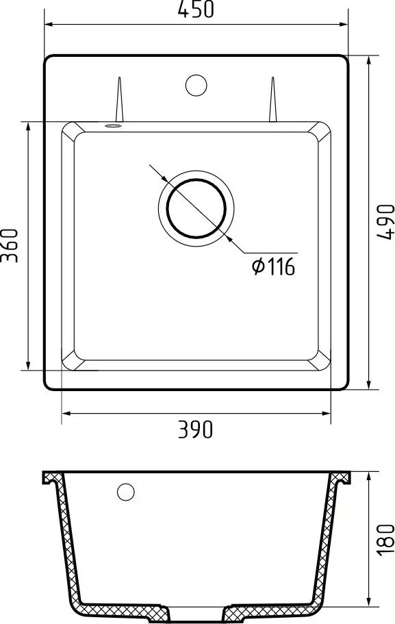 • Отверстия под смеситель: