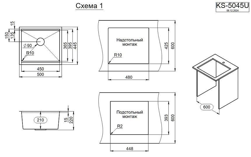 Мойка кухонная Granula 5045U, СТАЛЬ САТИН