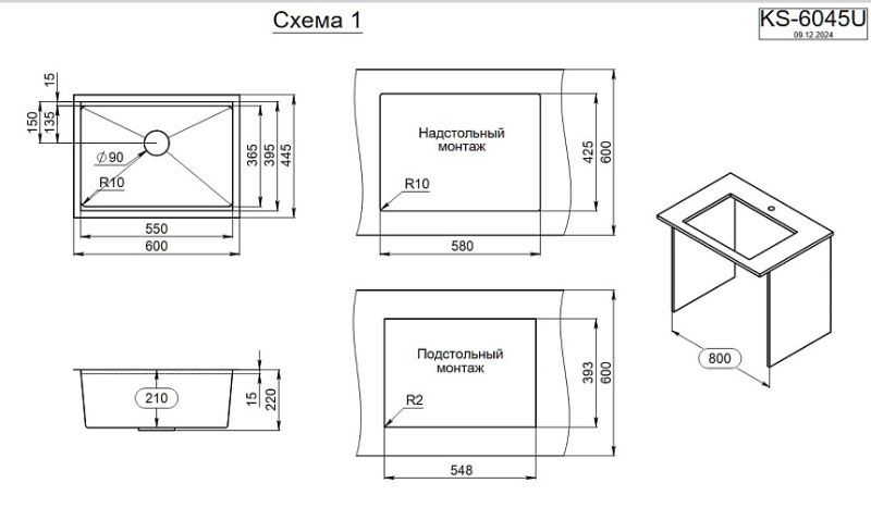 Мойка кухонная Granula 6045U, ЗОЛОТО САТИН