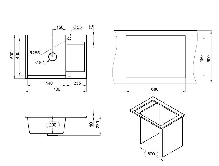 Мойка кухонная Granula 7003, ТУРМАЛИН Подробнее