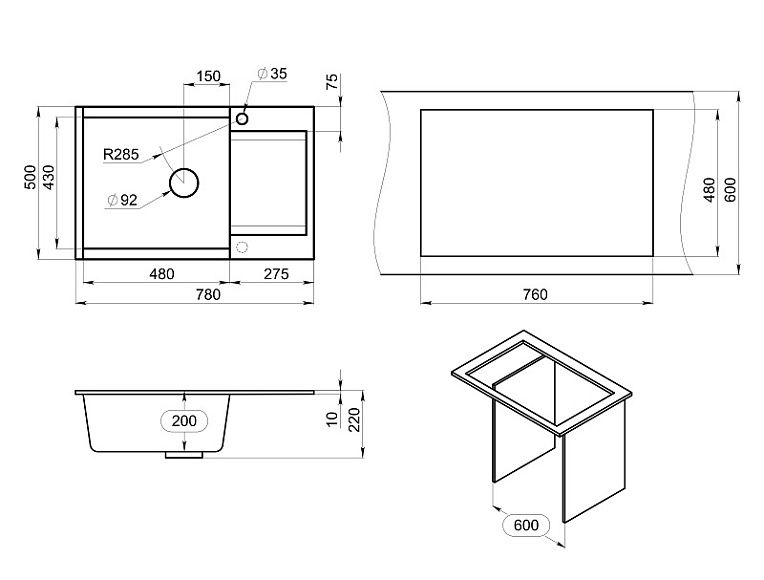Мойка кухонная Granula 7807, ГРАФИТ Подробнее
