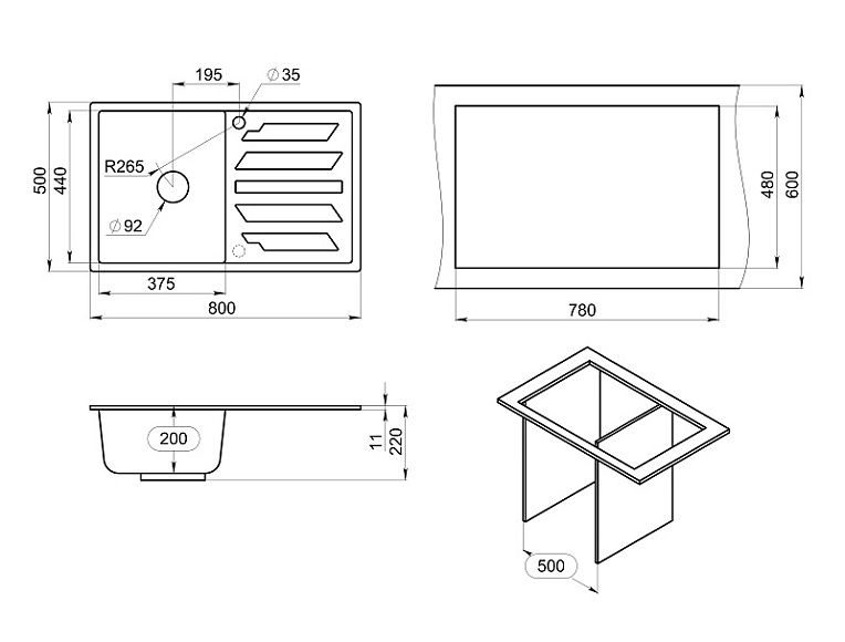 Мойка кухонная Granula 8002, БАЗАЛЬТ