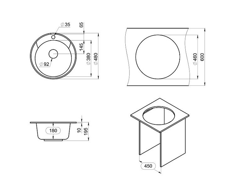 Мойка кухонная Granula Standart 4802, БАЗАЛЬТ