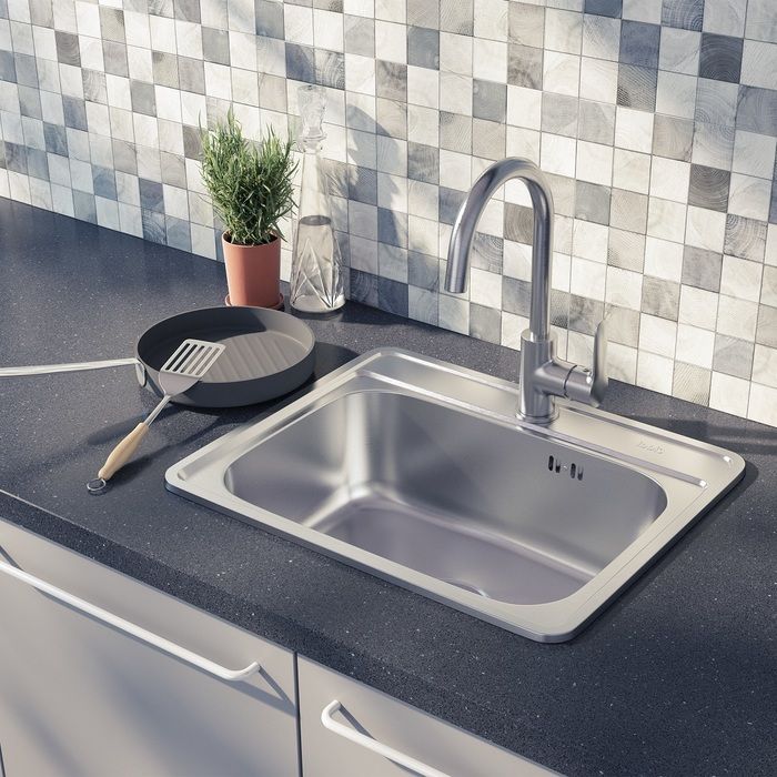 Качественная нержавеющая сталь толщиной 0,6 мм обеспечивает надежность, ударопрочность мойки и ее стойкость к износу.