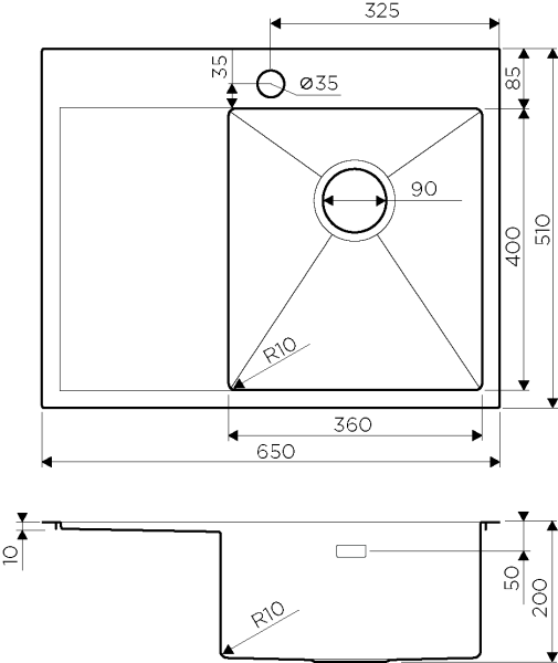 • Отверстия под смеситель: