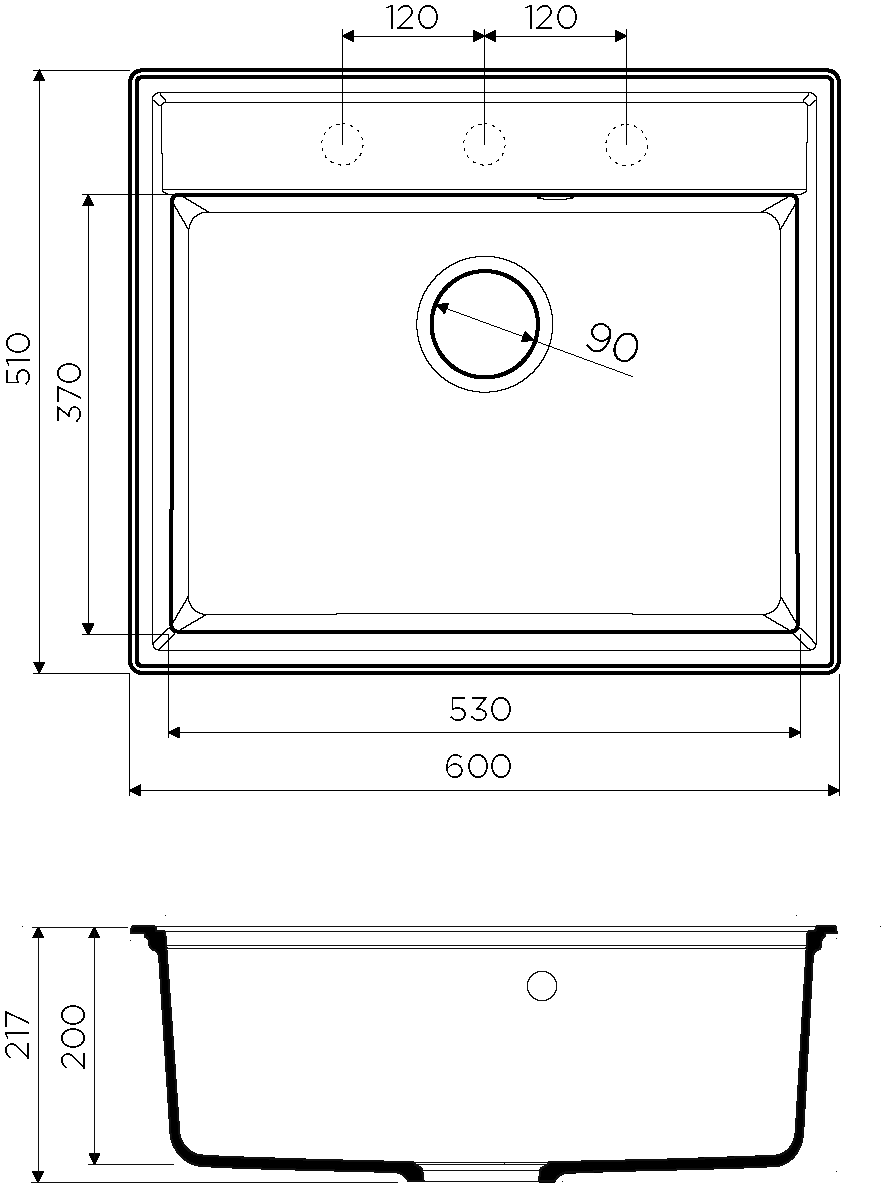 • Отверстия под смеситель: