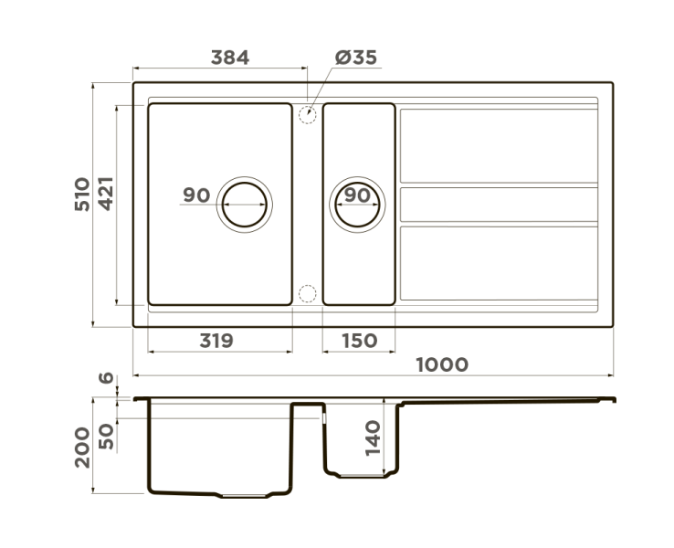 • ARTCERAMIC® – инновационный материал мойки для ценителей глянцевых поверхностей и лёгкого ухода. Мойка не впитывает загрязнения и устойчива к любому виду агрессивных веществ.