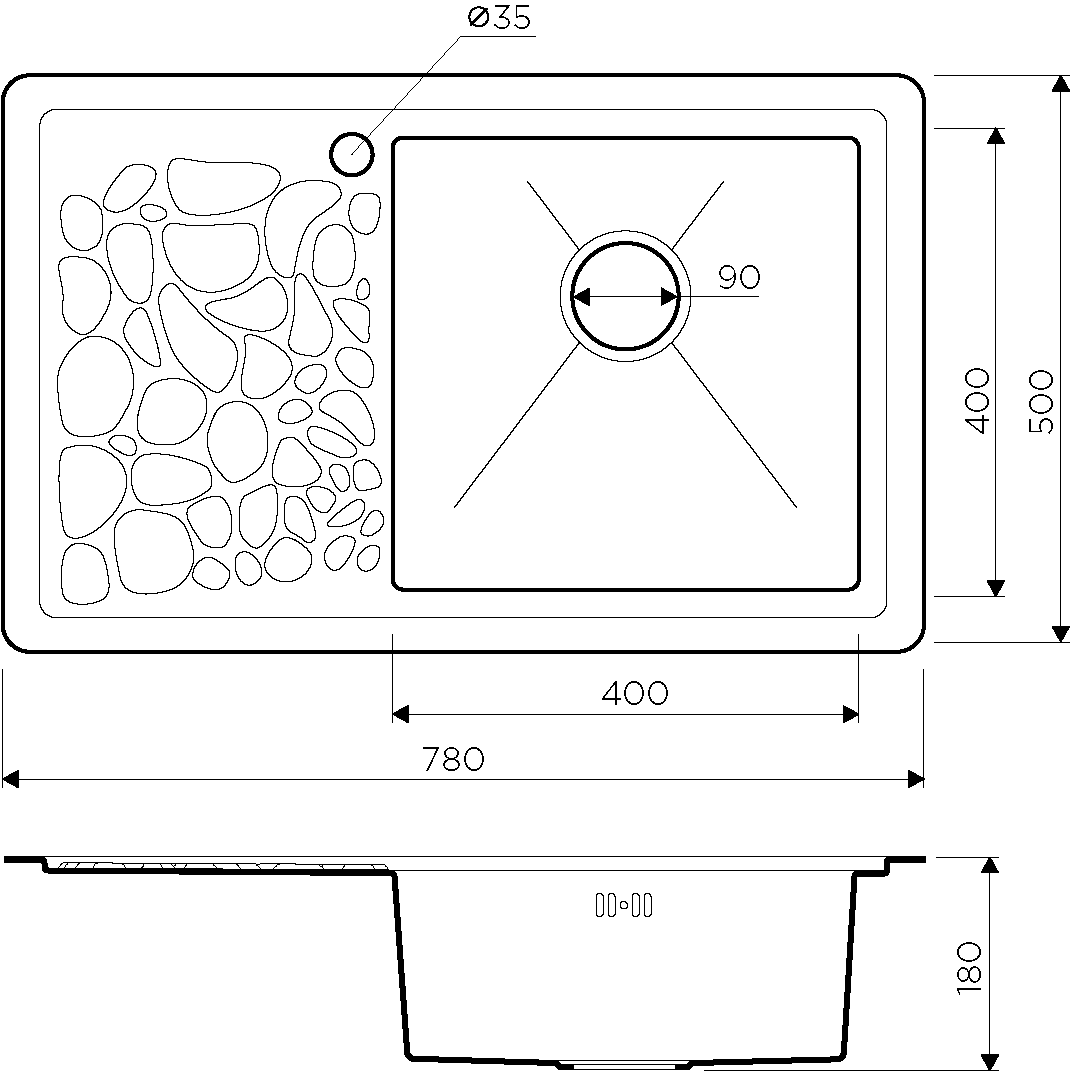 • Отверстия под смеситель: