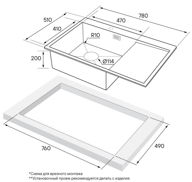 • Отверстия под смеситель: