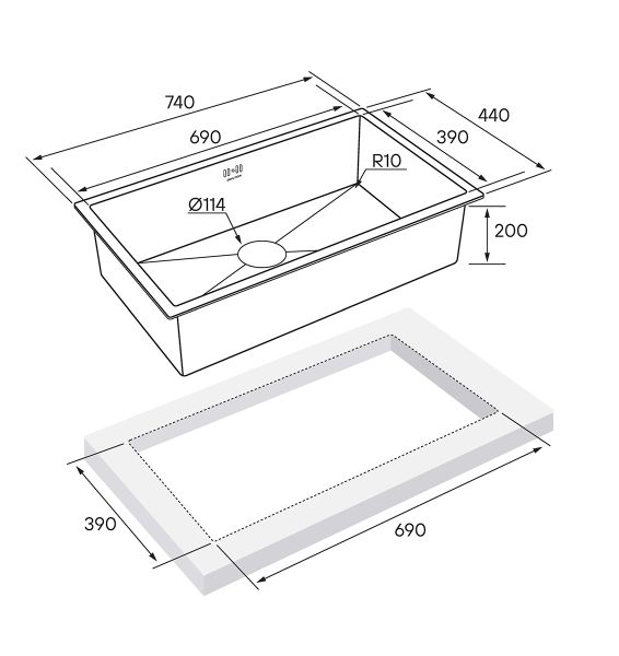 • Отверстия под смеситель: