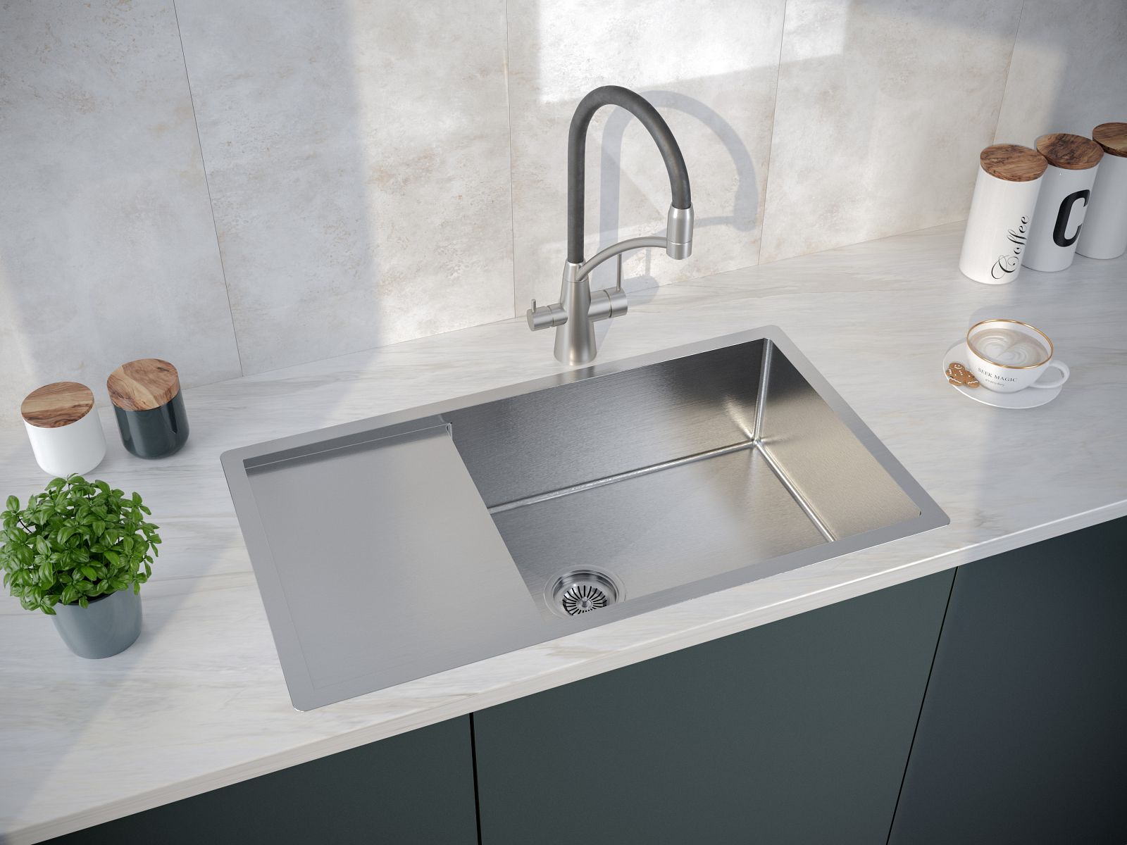 Мойки WING в оттенке GM имеет прочное PVD покрытие, которое нанесено на нержавеющую сталь. Оно особенно устойчиво к появлению царапин и истиранию, не содержит микротрещин и является экологически чистым.Функциональное плоское крыло; Готовое отверстие для кухонного смесителя.Имеет шумопоглощающее покрытие Stille® на внешней стороне чаши;