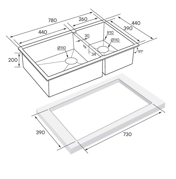 • Отверстия под смеситель:
