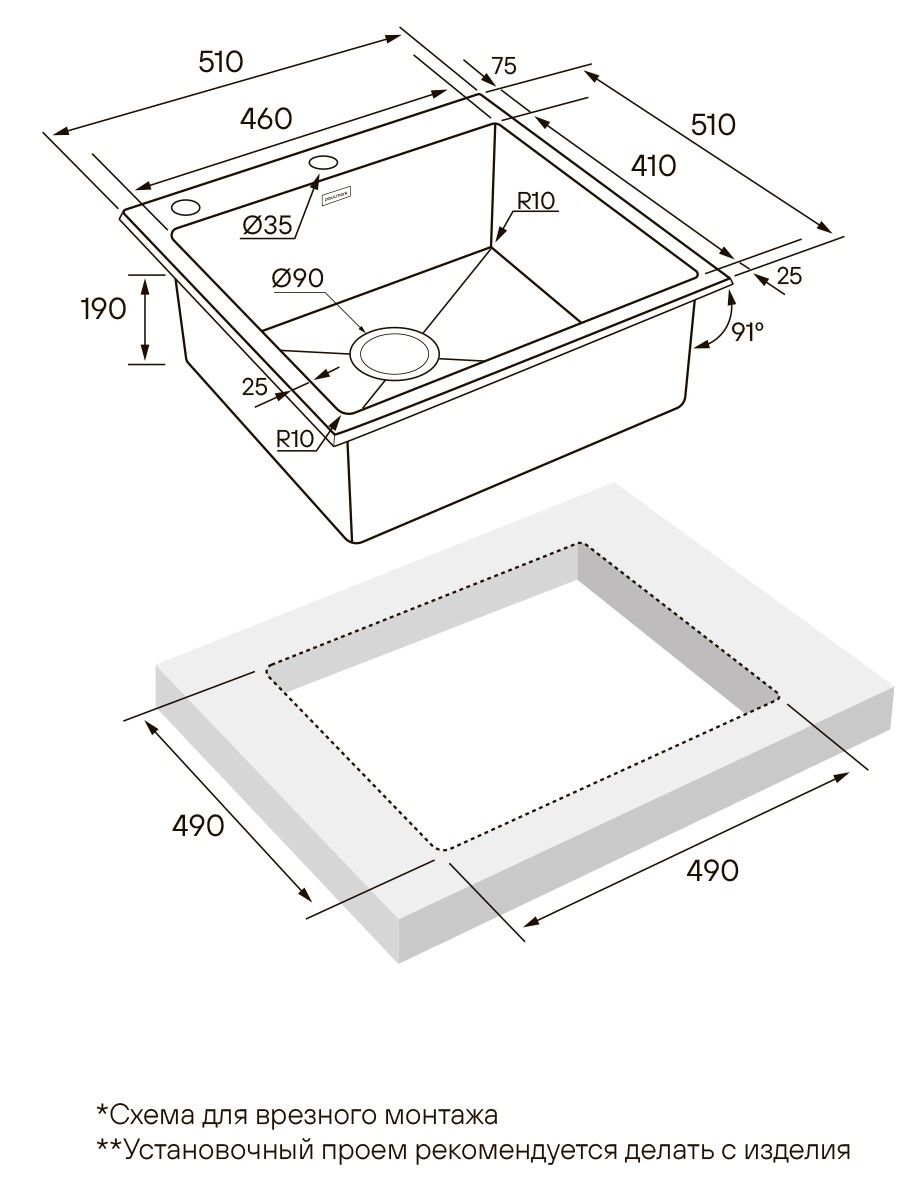 Мойка кухонная из нержавеющей стали, артикул PM775151-BGБортики мойки KRONER-EDGE имеют оригинальную форму боковой грани со скосом 45?, что дает повышенную эстетику и легкость в уходе. Изготовлена из нержавеющей стали, обладающей высокой коррозионной стойкостью, большим запасом механической прочности, а также устойчивостью к воздействию кислот и других химически активных соединений.Не подвержена деформации;