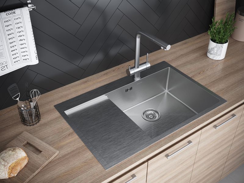 Мойки ATLAN R в оттенке GM имеeт прочное PVD покрытие, которое нанесено на нержавеющую сталь. Оно особенно устойчиво к появлению царапин и истиранию, не содержит микротрещин и является экологически чистым.Функциональное плоское крыло; Готовое отверстие для кухонного смесителя.Имеет шумопоглощающее покрытие Stille® на внешней стороне чаши;
