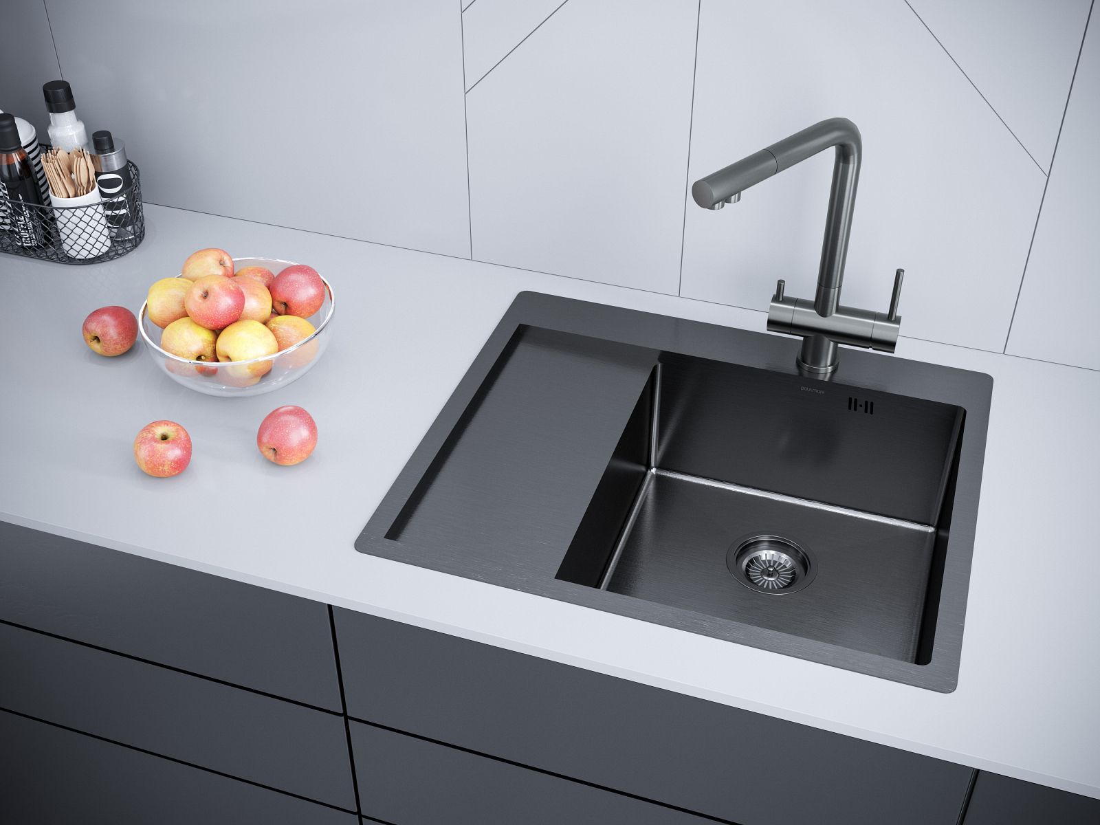Мойки в оттенке GM имеeт прочное PVD покрытие, которое нанесено на нержавеющую сталь. Оно особенно устойчиво к появлению царапин и истиранию, не содержит микротрещин и является экологически чистым.Функциональное плоское крыло; Готовое отверстие для кухонного смесителя.Имеет шумопоглощающее покрытие Stille® на внешней стороне чаши;