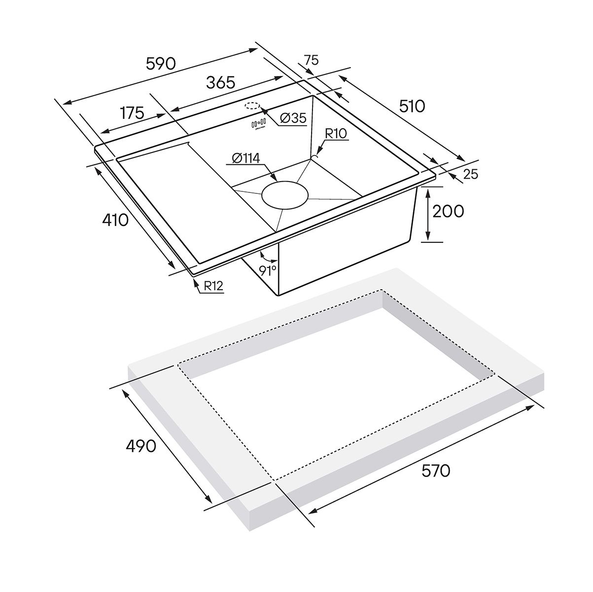 • Отверстия под смеситель: