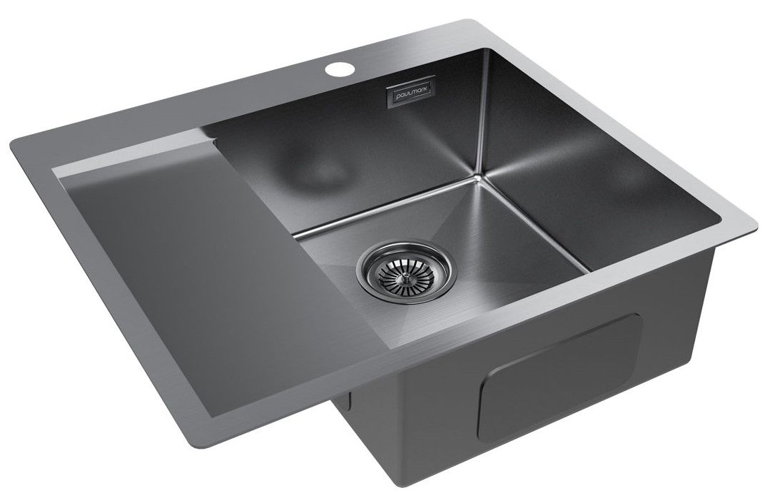 Мойка кухонная Paulmark Kroner PM225951-GMR правая воронёная сталь