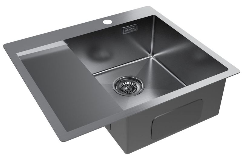 Мойка кухонная Paulmark Kroner PM225951-GMR правая воронёная сталь купить