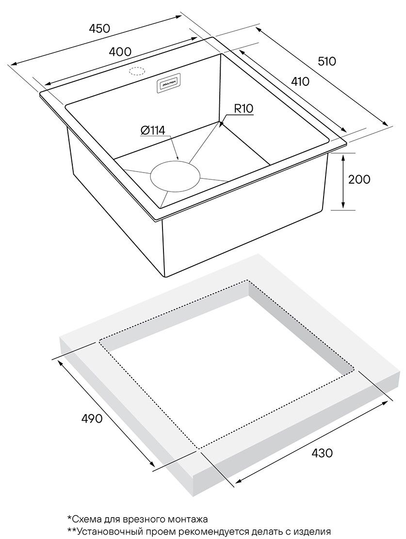 • Отверстия под смеситель:
