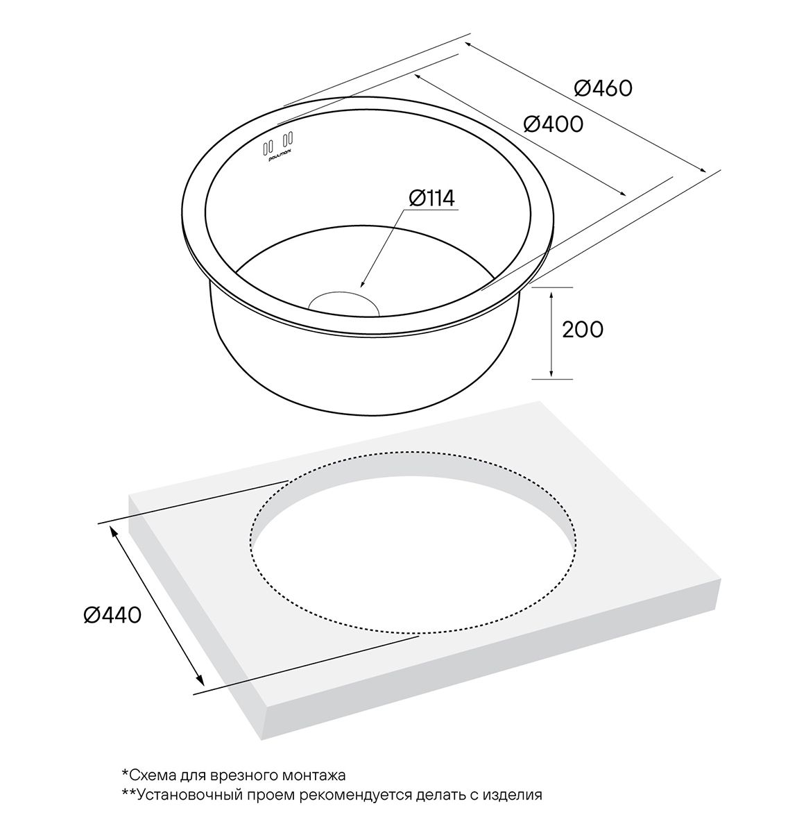 • Отверстия под смеситель: