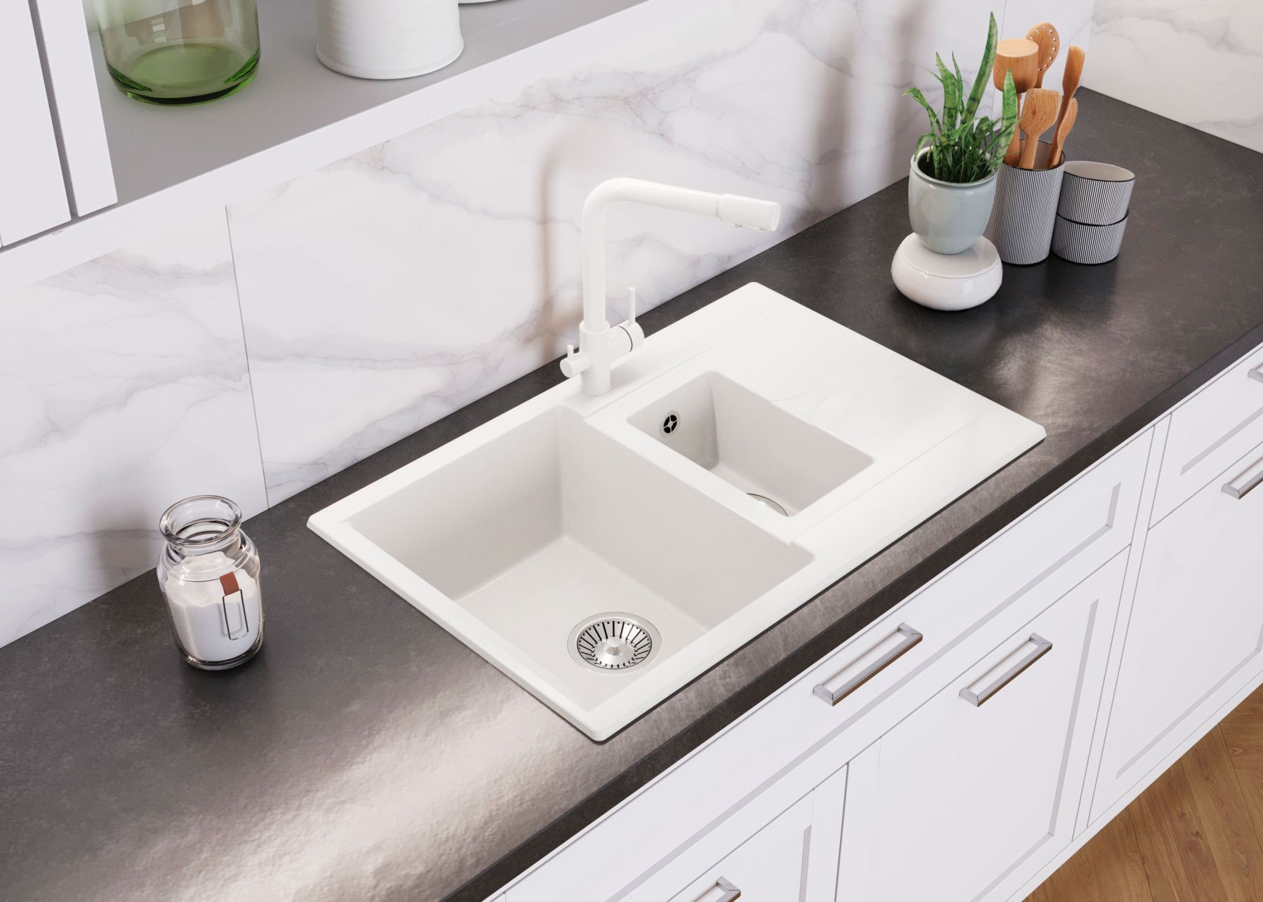 Под брендом Polygran производятся мойки эконом класса, в которых наилучшим образом сочетаются цена и качество. Мойка из искусственного камня универсальна, так как идеально вписывается в дизайн любого кухонного гарнитура, а в эксплуатации этому изделию нет равных - литые композиты выдерживают температурные колебания, имеют высокую прочность, бесшумность, нулевое водопоглощение, стойкость к пищевым и химическим красителям и для ухода за мойкой можно использовать любые неабразивные моющие средства.