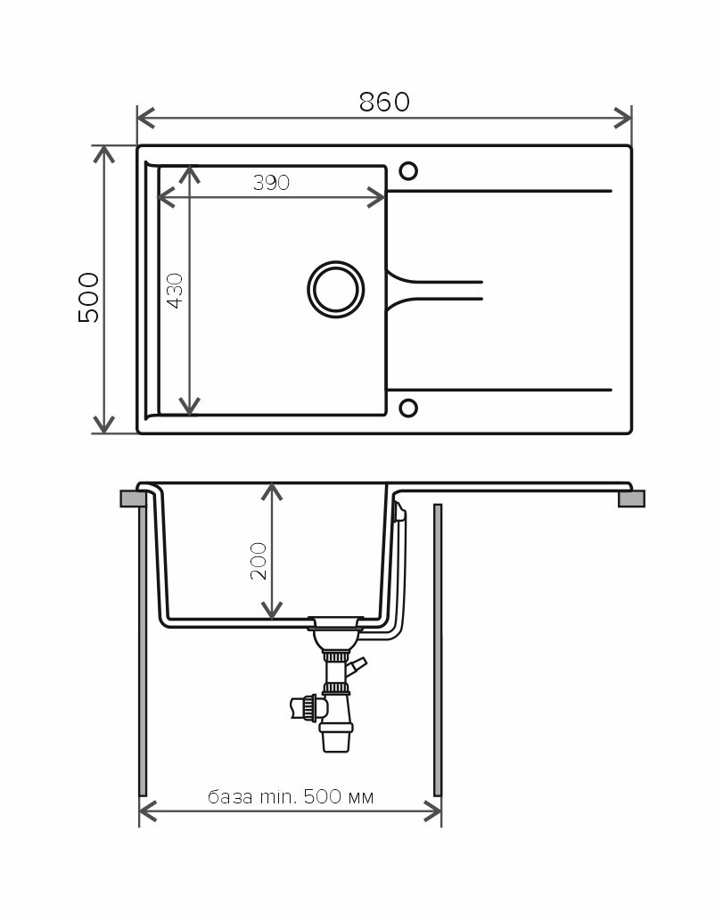 Мойка кухонная Polygran GALS-860 белый хлопок 473349