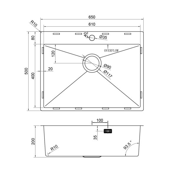 • Отверстия под смеситель: