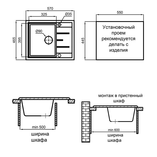 Удобная вместительная мойка подходит для установки как в угловой шкаф кухни, так и в прямые модули.