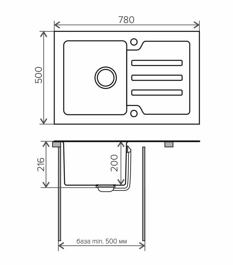 Мойка кухонная Tolero Ceramic Glass TG-780 чёрный 998569
