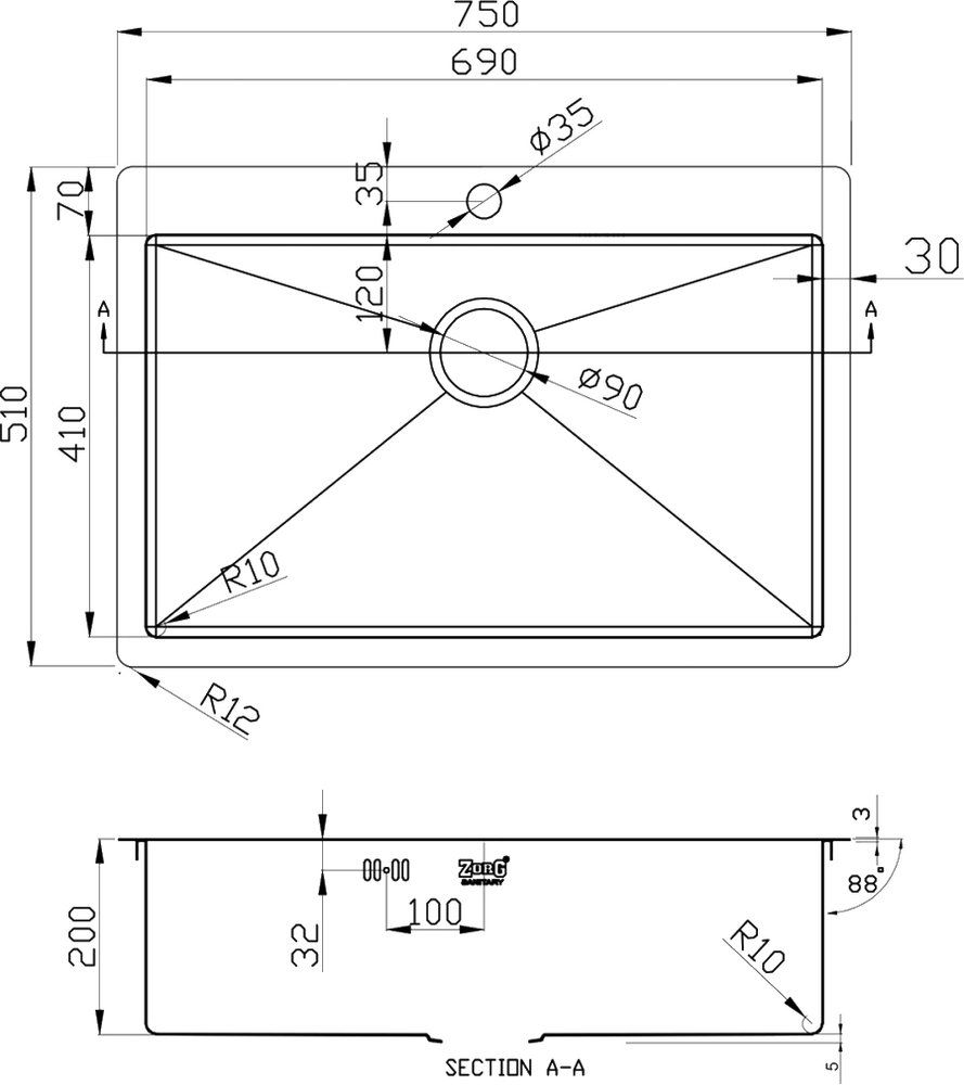 Мойка кухонная Zorg : чаша мойки выполнена из высококачественной легированной нержавеющей стали высококачественной нержавеющей стали с последующей специальной PVD-обработкой в цвет графит. Данная модель прочная, устойчивая к царапинам, способна выдерживать высокие температуры. Форма: прямоугольная, цвет мойки -графит.