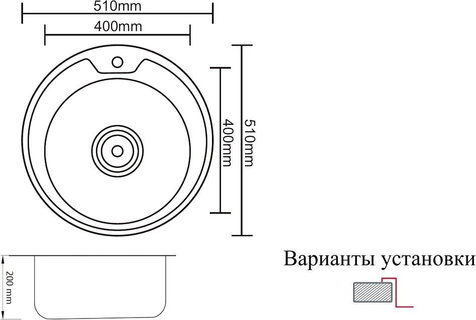 • Отверстия под смеситель: