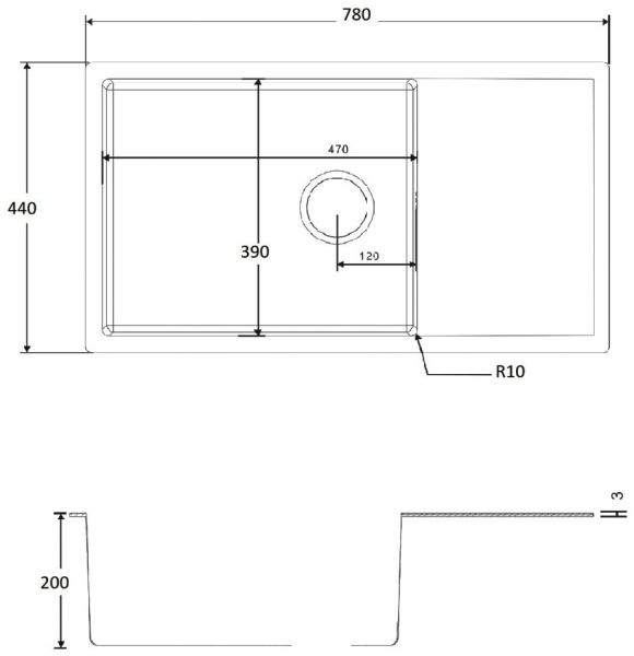 • Отверстия под смеситель: