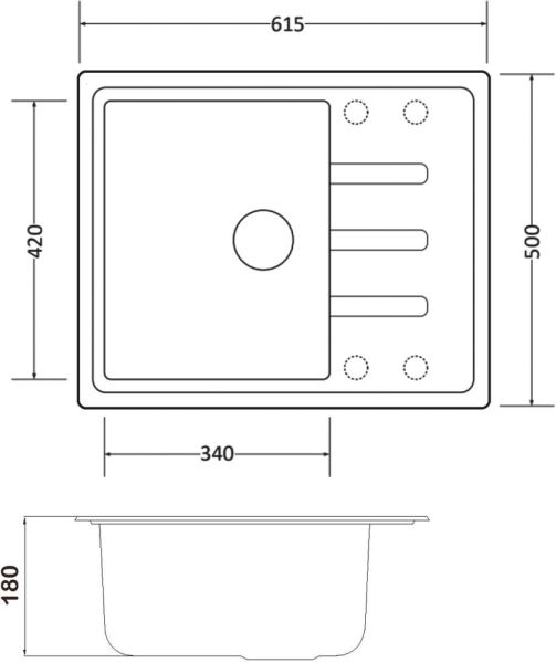 • Отверстия под смеситель: