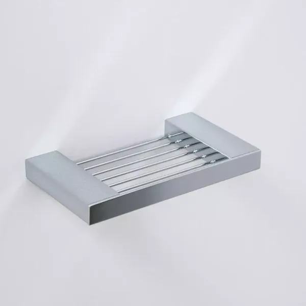 Мыльница для ванной комнаты Aquanet 5611 с решетчатым основанием, на которое непосредственно кладется мыло, продумана до мелочей при всей ее внешней простоте. Благодаря решетке в ней не застаивается вода, что позволяет экономить мыло. Изделие выполнено из латуни. Этот многокомпонетный сплав отличается прочностью и стойкостью к коррозии, что особенно важно в условиях повышенной влажности. Решетчатое основание окаймлено со всех сторон широкими металлическими бортами, так что мыло не соскользнет. А крепление мыльницы к стене простое и надежное.