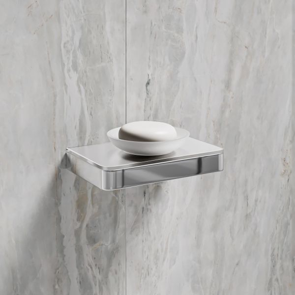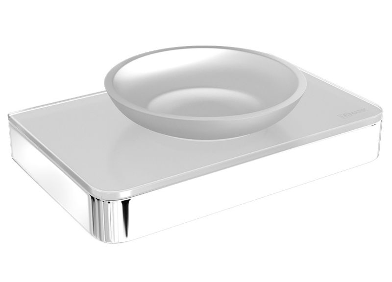 Мыльница Lemark Glass Line 9741037 с держателем хром/белое стекло