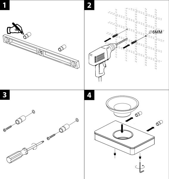 Крепёж в комплекте — простой и надёжный крепёж обеспечивает гарантированную нагрузку до 5 кг.