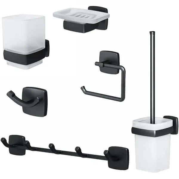Комплексное оснащение: Комплект аксессуаров для ванной включает все необходимое для комфортного использования.