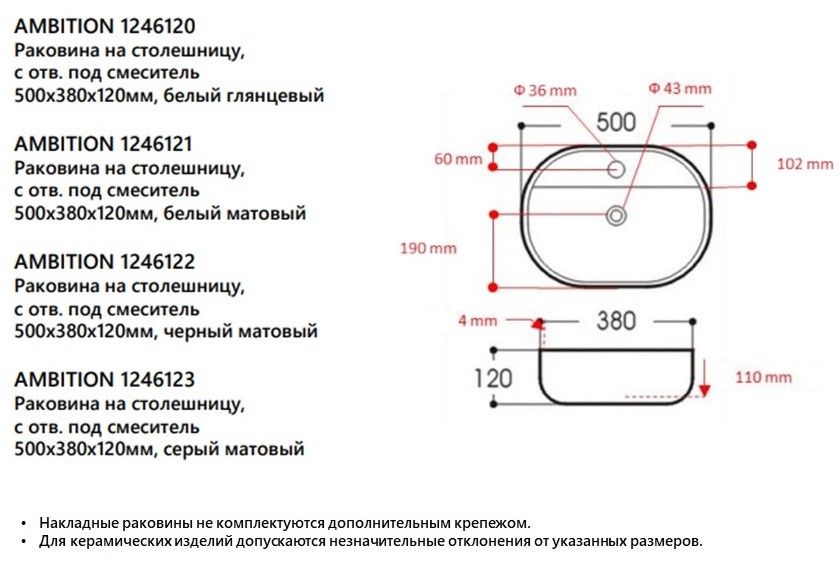 Накладная раковина Avimano Ambition 1246120 50см белый глянец купить