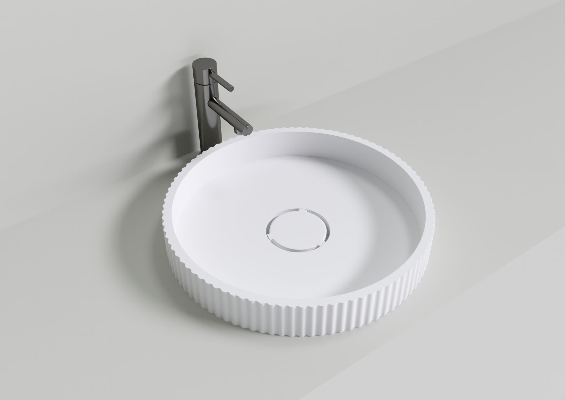 Раковина Fanello воплощает собой идеальный круг, очерченный тонкими краями с элегантной ребристой поверхностью.