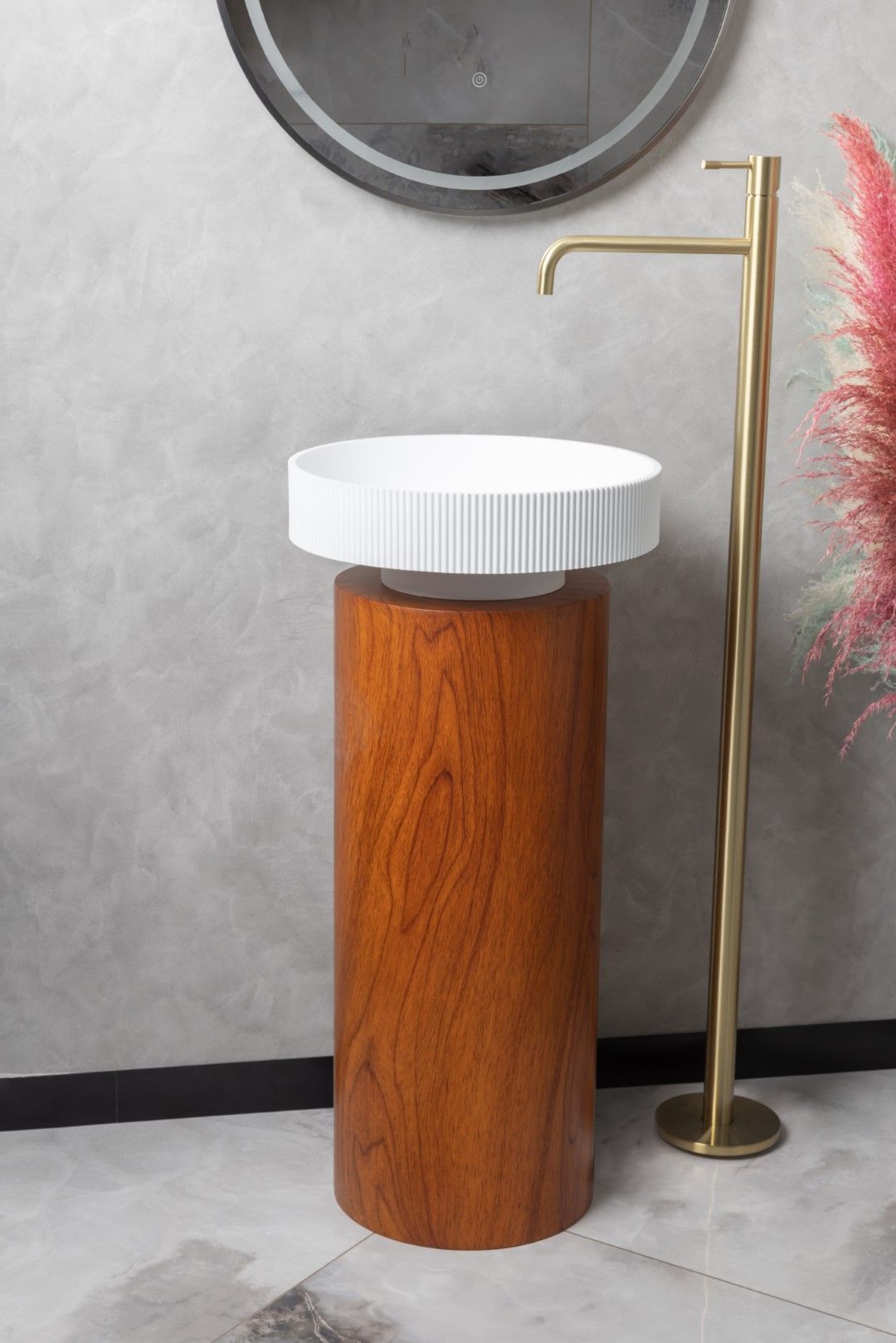 Накладная раковина с пьедесталом золото Armadi Art Sole Corian 801-R-MW+801-Base-Rwood белый матовый/красное дерево
