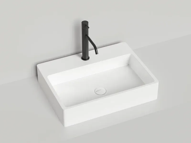 OTTAVIA – большая накладная раковина с прямоугольной формой чаши, в которой предусмотрена площадка под смеситель.