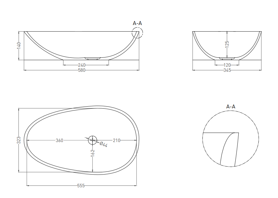 Накладная раковина Salini Paola S-Sense 1101101GRH 58см RAL снаружи