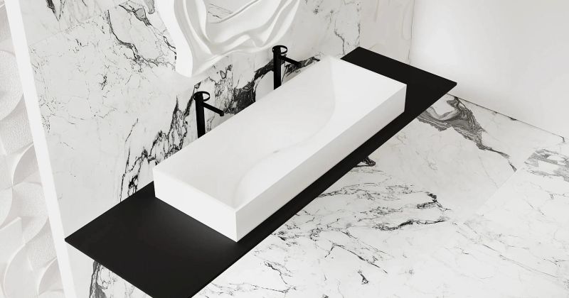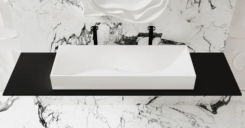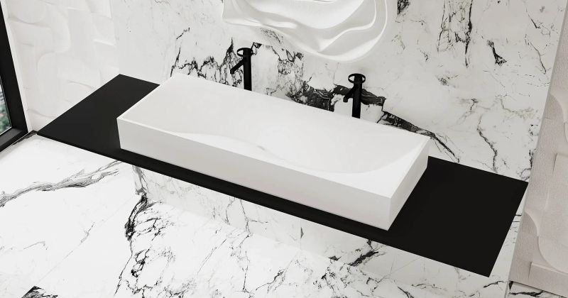Удлинённую раковину SONATA можно разместить как накладную на тумбе DOMINO или столешнице COSTA. Преимущества