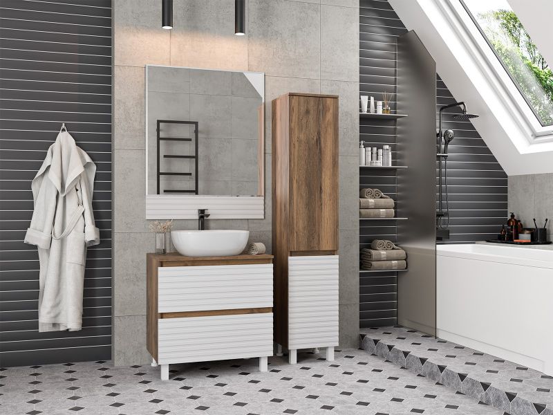 Напольная тумба под раковину – это не просто элемент мебели, но настоящее произведение искусства, которое сочетает в себе функциональность и изысканный дизайн. Изготовленная из высококачественных материалов, она гарантирует долговечность и устойчивость к воздействию влаги.Удобная система хранения позволяет размещать все необходимое для гигиенических процедур, а её продуманные размеры отлично вписываются даже в небольшие помещения. Стильные ручки и элегантные фасады придают тумбе особый шарм, а разнообразие цветовых решений позволит выбрать модель, соответствующую любому интерьеру – от классического до модерн.Мягкие линии и непринужденные формы делают тумбу неотъемлемой частью ванной, превращая её в любимое место для отдыха. Совершенное сочетание эстетики и практичности позволяет создать гармоничный и стильный интерьер, что делает напольную тумбу для ванной комнаты идеальным аксессуаром для любого дома.